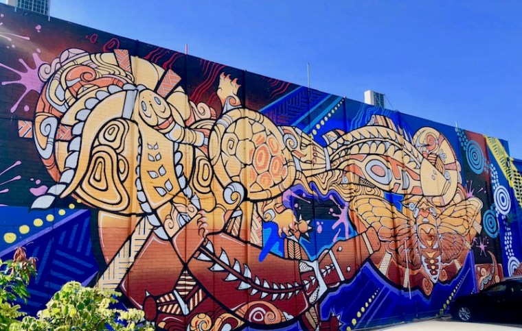 September 2018 saw street artists, both local and international, head to Northern Australia to participate in the Darwin Street Art Festival. The festival, which was held on the 15-16 September, included live music, family activities and the chance to see street artists creating their murals in the heart of Darwin. The festival turned the boring back laneways of Darwin into an urban gallery and included imagery of some of the well-known locals, Australian fauna and flora as well as a series of abstract designs.