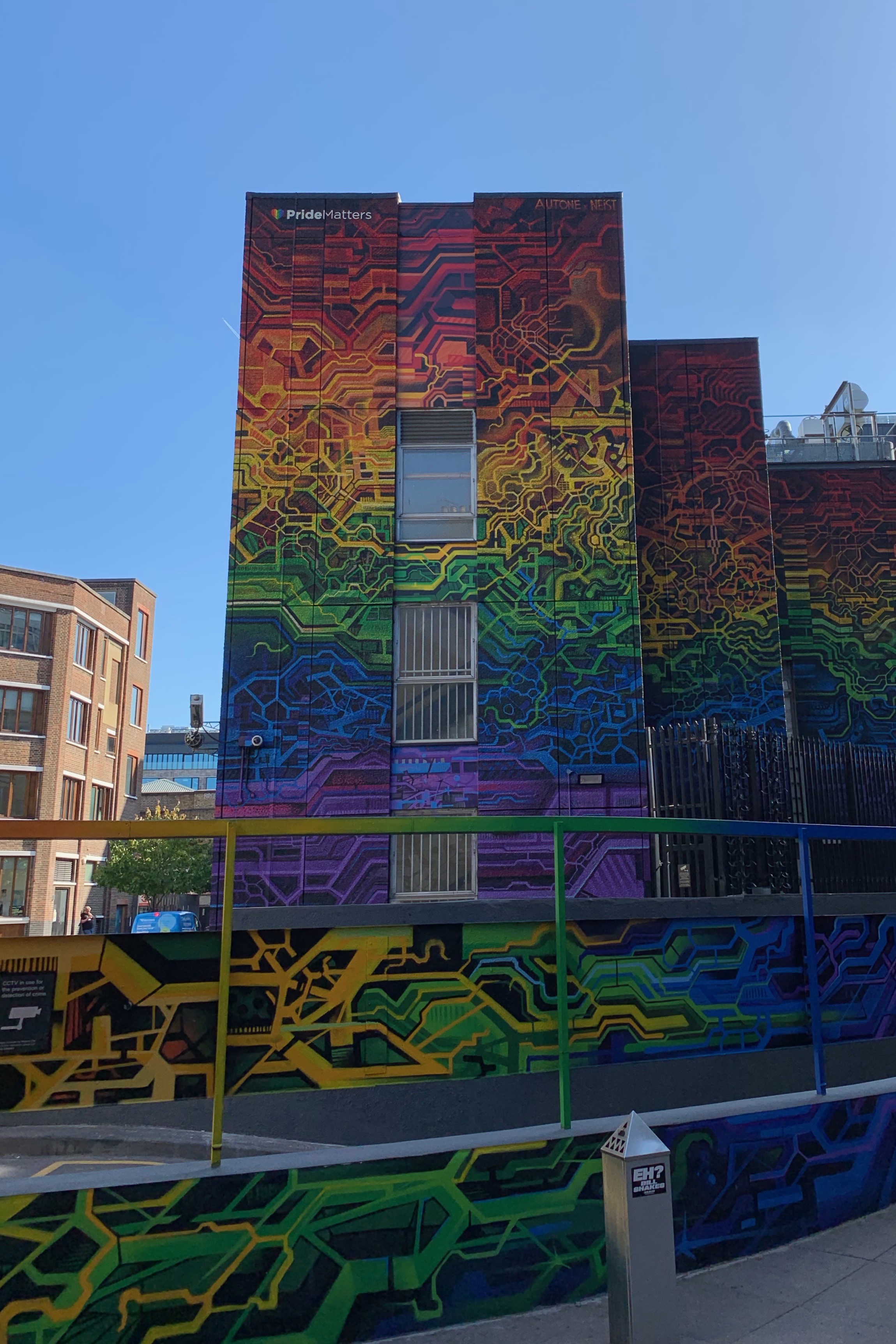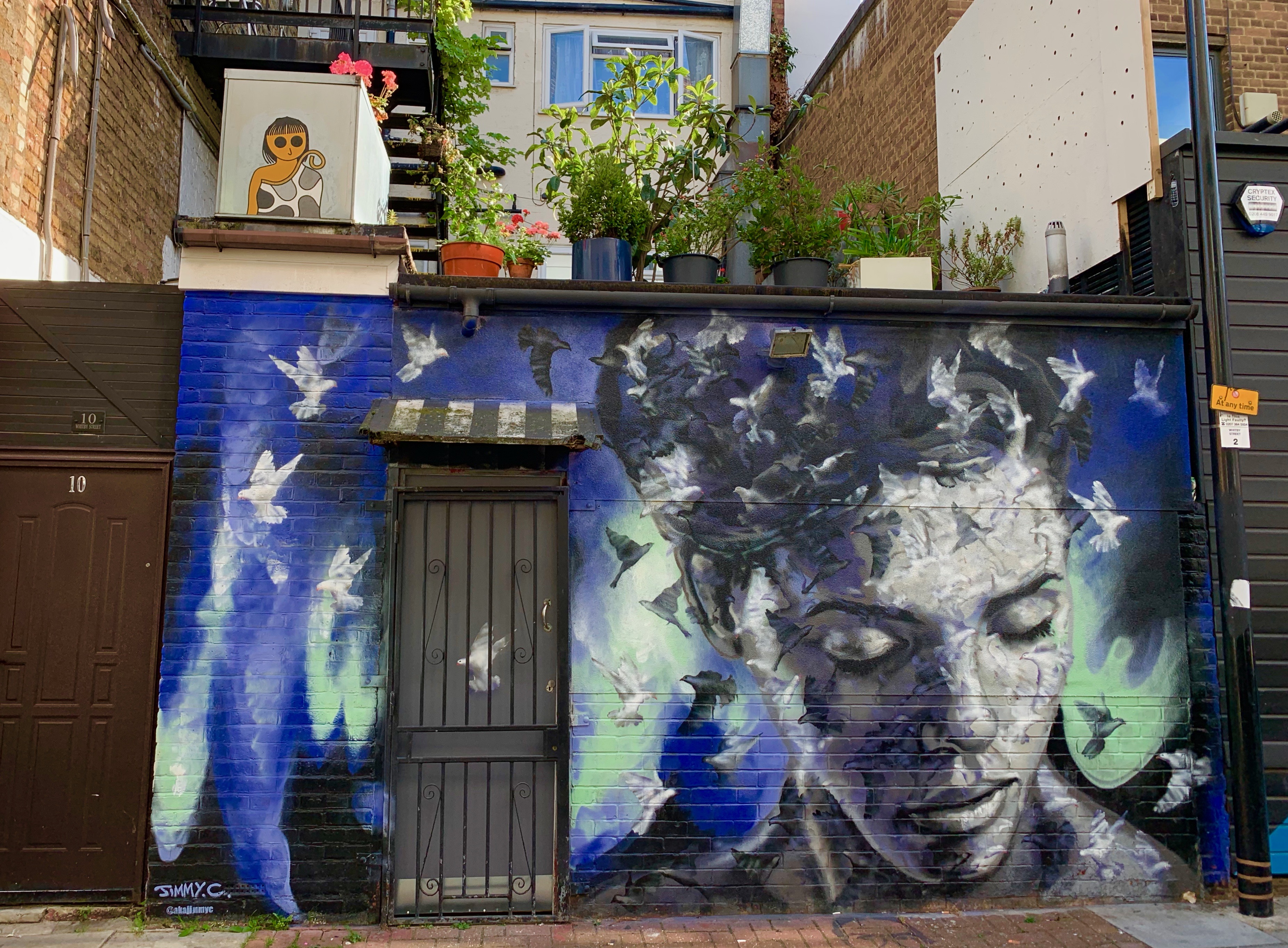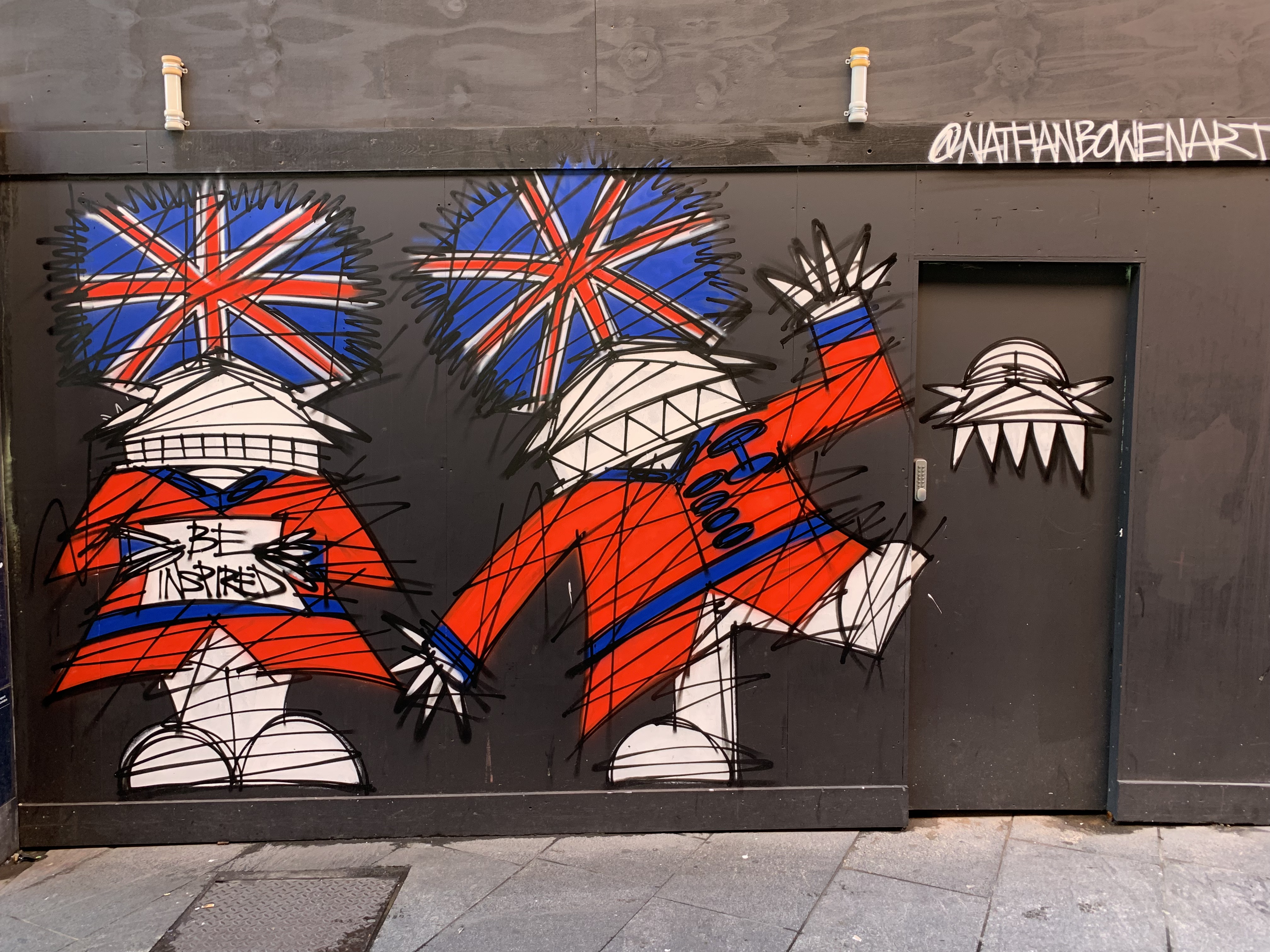 Shoreditch, is a suburb in London that embraces street art and graffiti: wall upon wall is covered with tags, pieces, murals, sculpture and paste ups. It is a feast for your eyes and moves between stylized pieces and vibrant imagery, to political commentary about what is happening around the world (including some not so complementary images of Boris – the UK’s Prime minister).