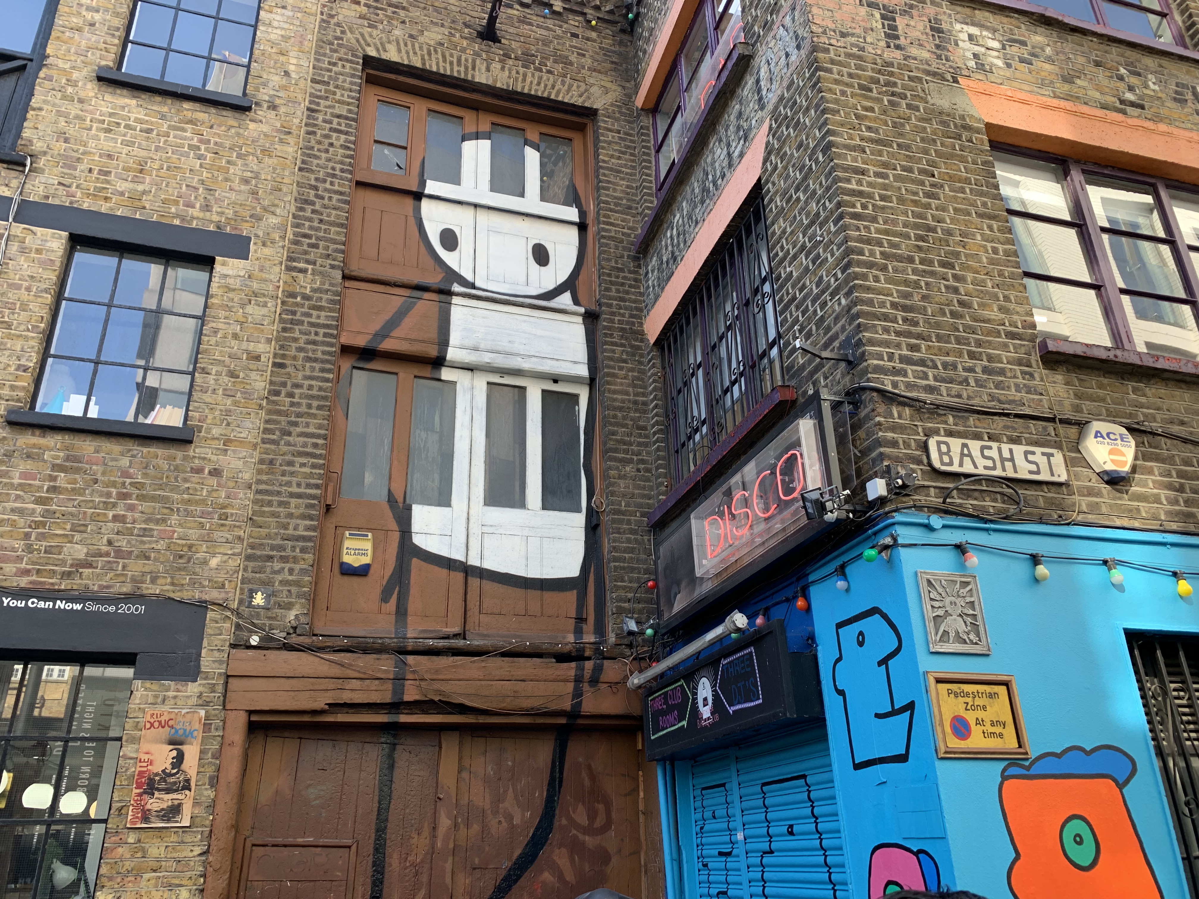 On the train arriving into Shoreditch, I was like a child with my face squidged against the train window taking in the immeasurable amounts of graffiti and street art.