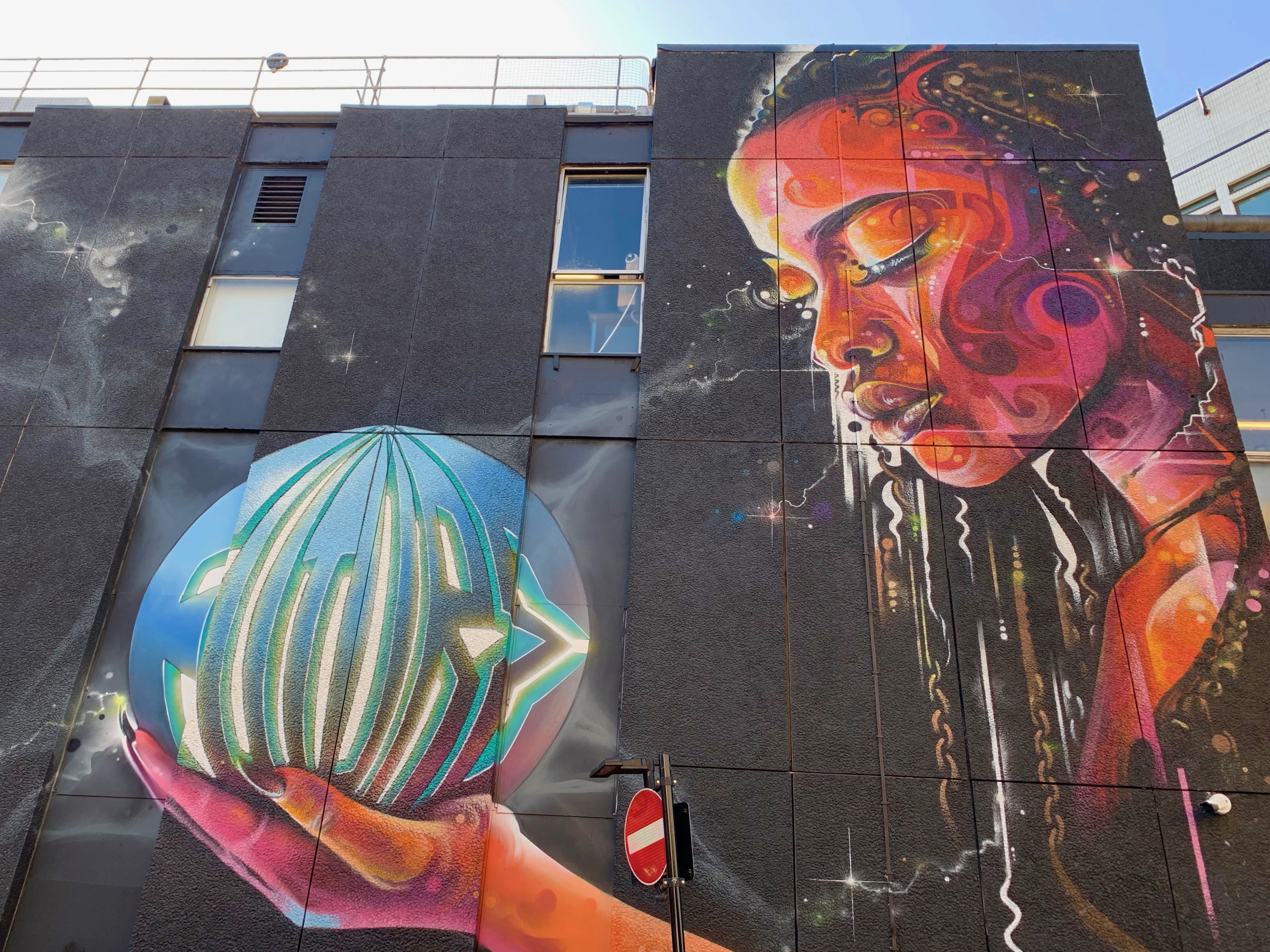I went on a street art tour with Strawberry Tours, with our guide Ollie, and this took us on a tour through the suburb. Ollie stated the area is always changing in both respect to the works and the shape of the neighborhood as it is continually becoming gentrified.