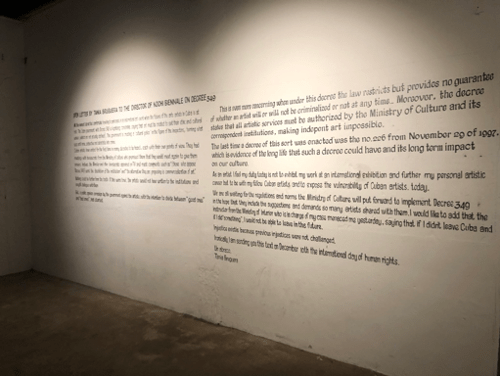 This created a a space for audiences to reflect censorship and the challenges facing Cuban artists. This letter allowed for audiences to understand the restrctions that are in place for certain artists in Cuba.