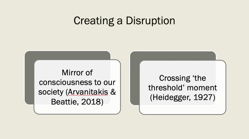 The paper was submitted to the Global Media Journal and accepted for publishing with changes. The changes requested focused on further developing the theoretical framework around this concept of disruption. In arts and practiced based doctorates, theory engagement often follows the artistic component. As my artistic component has been delayed because of the global pandemic, this forced me to develop theoretical work before my field work.