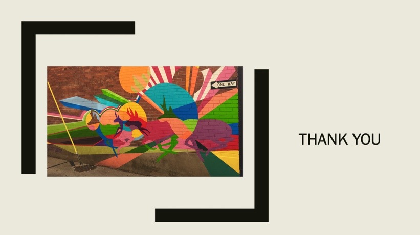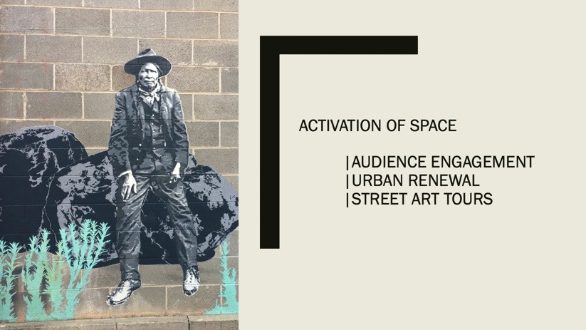 The presentation is part of my broader Doctor of Creative Arts project that is on contemporary Australian street artists and how street art creates a disruption in our everyday experiences of the urban environment. This case study presented was based on my research was conducted in Laramie, a small town in Wyoming, USA.