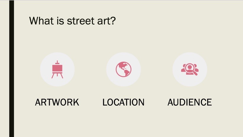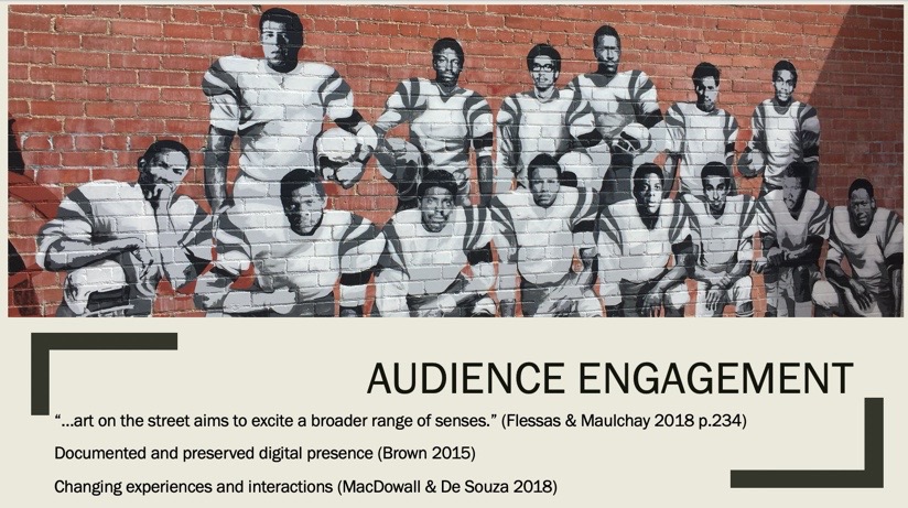 In the paper that this presentation draws from, I argued that street art can be used to create an ‘activation of space.’ This can happen through the art, the engagement with the audience and the way that events such as stress art tours build around the art works.